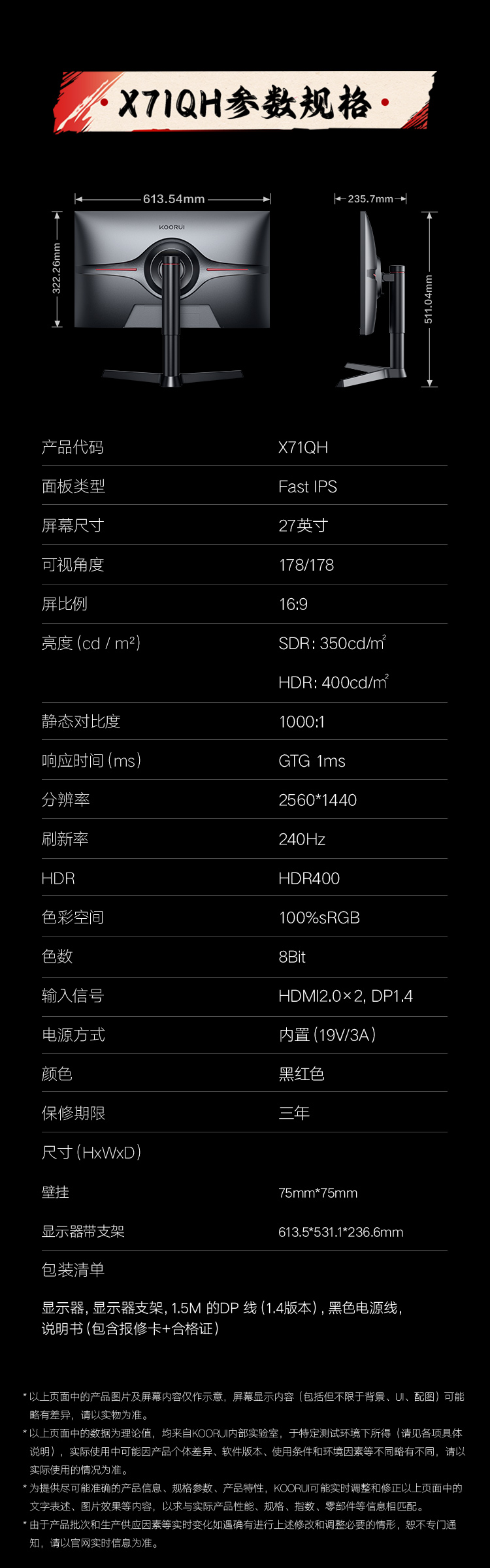 惠科在国家“三包”的基础上,提供如下“三包”细则: